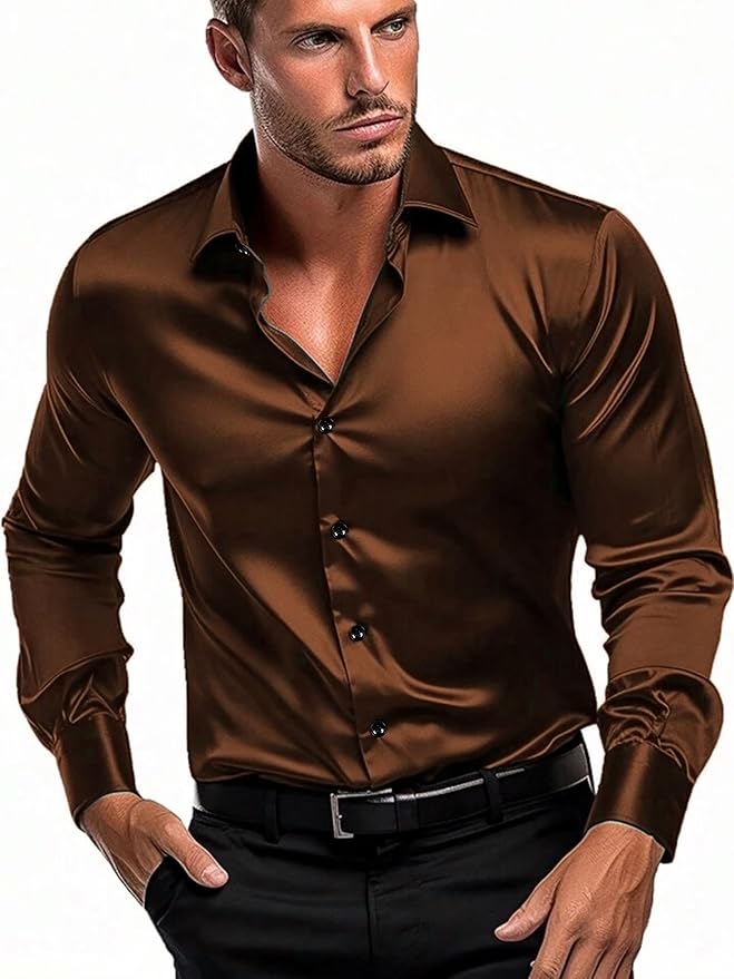 IndoPrimo Men’s Satin Shirt with Spread Collar Full Sleeves